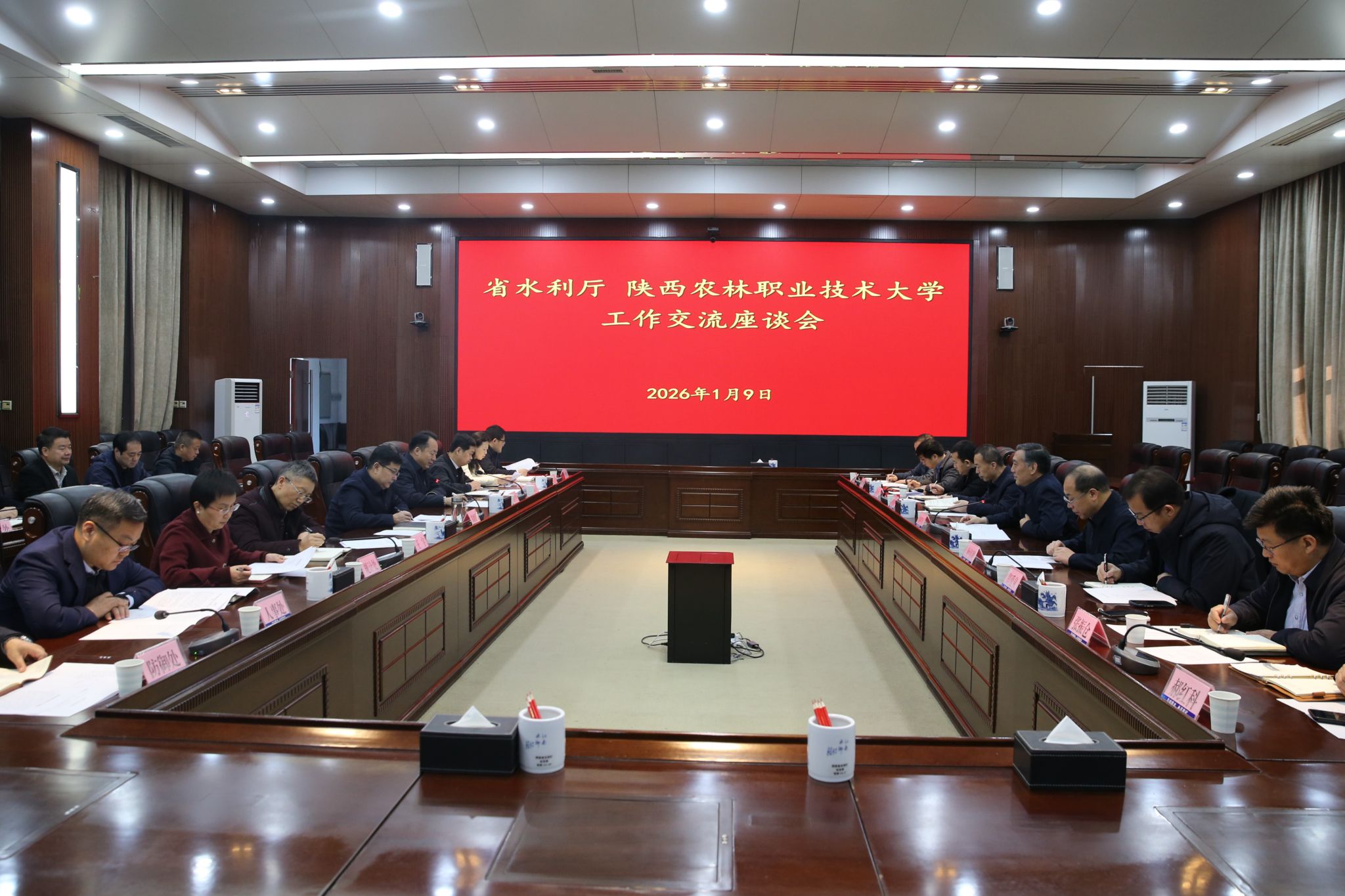 韩明军向省水利厅长期以来对学校的关心、支持与帮助致以诚挚感谢。他表示,从陕西省水利学校到陕西农林职业技术大学,学校已成长为农林水牧专业门类最为齐全的综合类职业本科院校。职业教育前途广阔、大有可为,培养水利类高素质技术技能人才使命在肩、任务艰巨,希望与省水利厅进一步深化合作,构建更加高效的厅校合作机制,培养更多行业需要的高素质水利人才,携手传承好、保护好水利文化,让职业教育与行业进步、产业转型、区域发展同频共振,更好地服务经济社会发展,助力全省水利事业实现高质量发展。